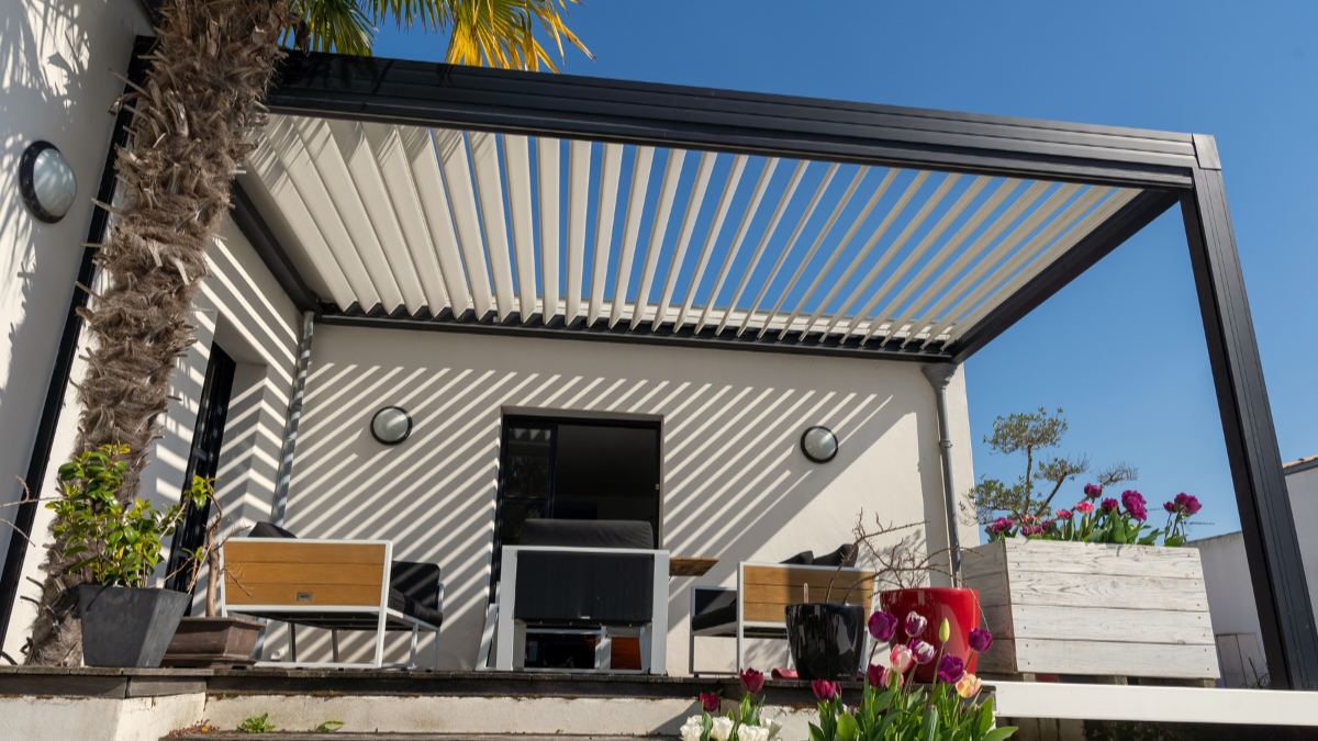 Sistemele noastre de pergole bioclimatice sunt dotate cu lamele orientabile din aluminiu, care permit reglarea naturală a luminii și a ventilației.